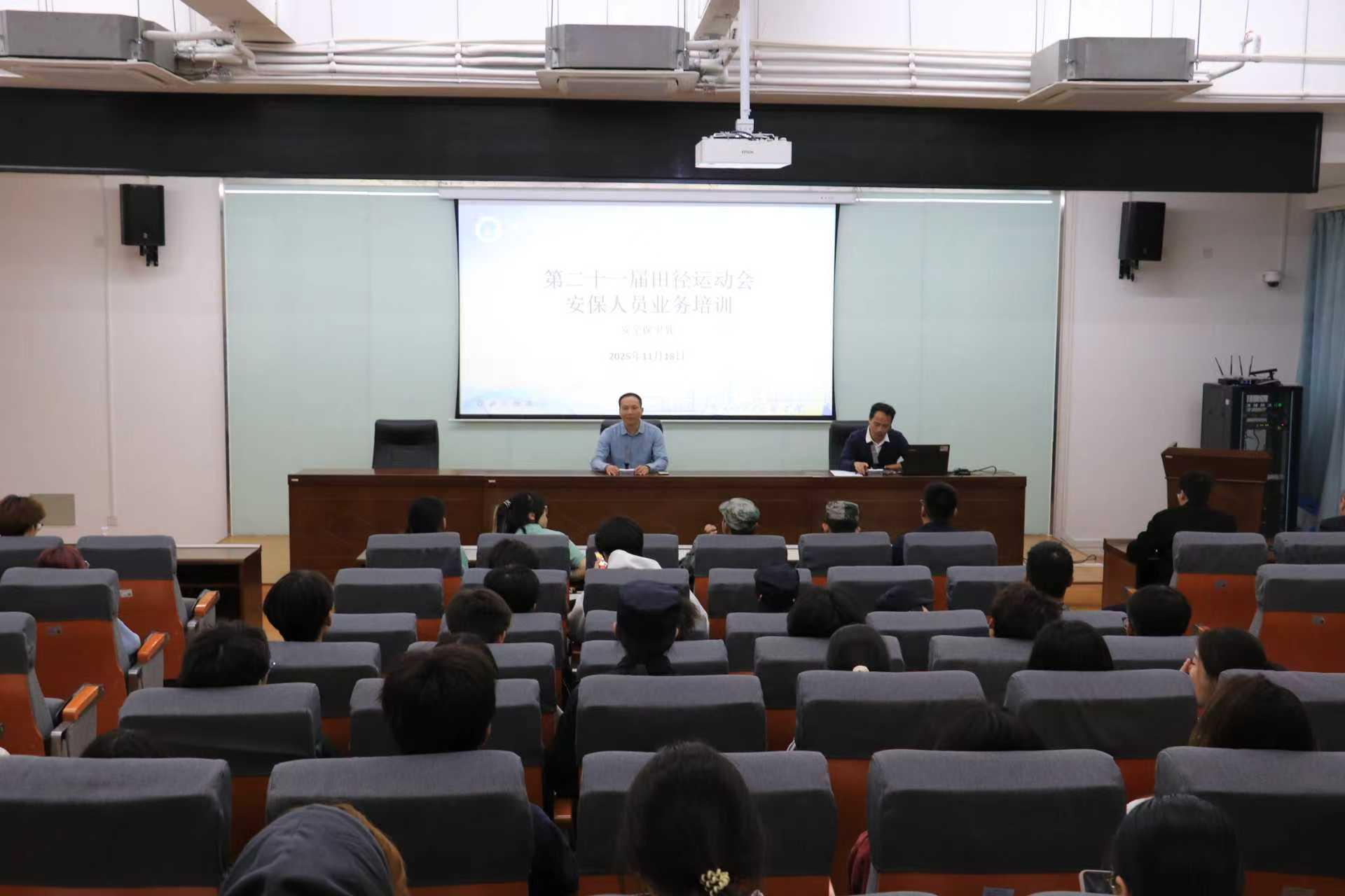 为确保运动会各项组织工作高效有序推进,2025年11月18日下午4时,安保人员业务培训会于信息楼南403室如期启幕。会议由学院安全保卫处徐振东科长主讲。