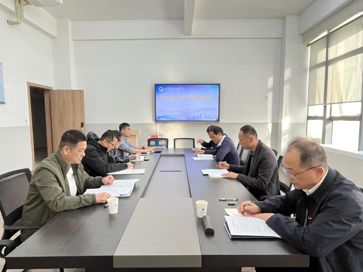 2025年11月25日,学院在行政楼南103会议室组织召开了十一月份安全形势分析会。会议由安全保卫处处长陈朝军主持,学院副院长陈金毓及安全保卫处全体人员参加会议。