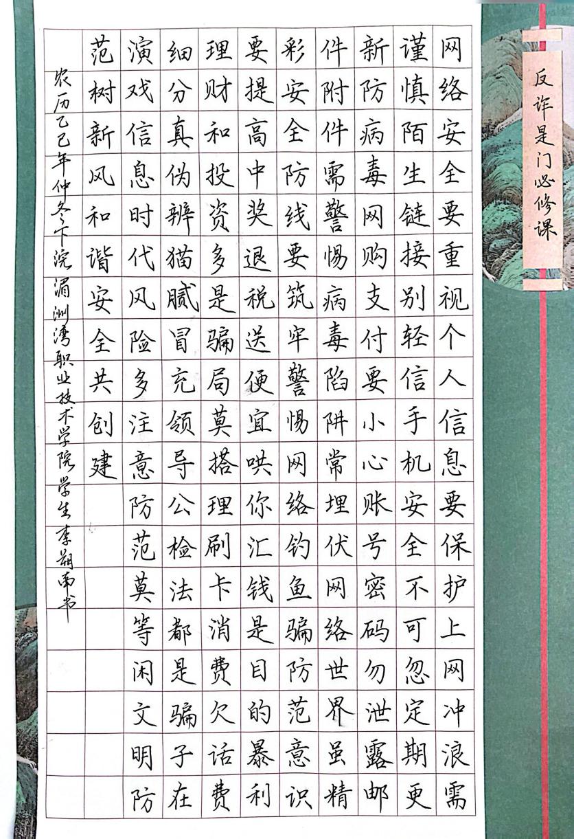 《反诈是门必修课,筑牢防线守好责》硬笔 代柏微 产品艺术设计2502